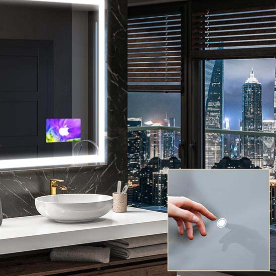 Opt for the Mirror with the powerful SmartPanel by Samsung for an Android-powered experience, managing all your favorite apps available on the Play Store. Enjoy immersive audio with the high-quality integrated speaker, enabling you to listen to music, watch movies, and stay updated with news – all from the mirror itself. Control the device effortlessly with a sleek indicator attached to the side of the mirror, seamlessly integrated into its design, available in 10.5″ or 8.7″ displays.