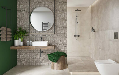 Nerina Slash is a tile collection that combines three perfectly coordinated shades – grey, ivory and taupe. They are linked by a structural wall tile with geometric pattern to create astonishing bathroom interiors. The collection is inspired by modernist simplicity in raw concrete material. Wall and floor tiles from Nerina Slash provide an opportunity for arrangements in a variety of styles. The matt finish brings a subtle touch to the overall look.